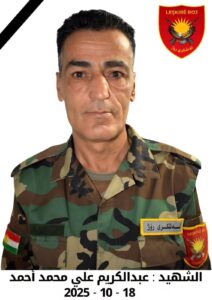 قام مجلس محلية الشهيد نصرالدين برهك في جل آغا وآليا، اليوم الأحد ١٩ تشرين الأول/أكتوبر ٢٠٢٥م، بأداء واجب العزاء في قرية كرزيارت جولي، بوفاة البيشمركة عبد الكريم علي من مرتبات قوات بيشمركة لشكري روج.