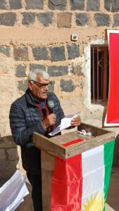 تلاها كلمة الحزب الديمقراطي الكوردستاني – سوريا، ألقاها الأستاذ أحمد داوود، والتي استهلها ببضع أبيات من الشعر الثوري تمجّد البارزاني وخصاله النبيلة ومعاني ثورته، مسلطاً الضوء على نضاله الطويل من أجل حرية شعبه وانتشاله من الظلم والهوان.