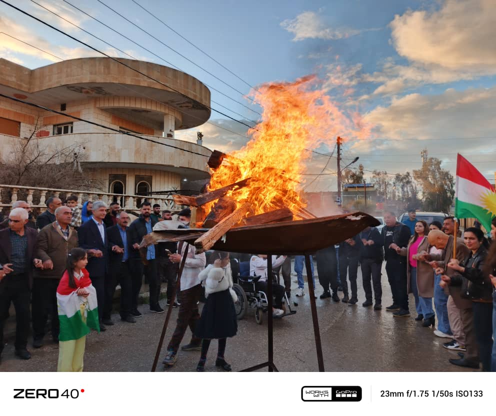 بعدها، أُوقدت شعلة نوروز مع بدء فقرات من الغناء القومي والرقصات والدبكات الكوردية، وسط فرح الجميع بهذه المناسبة المقدسة لدى شعبنا.