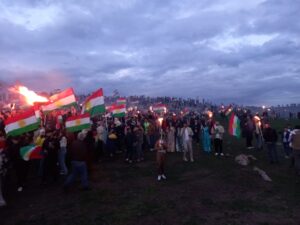 وعند وصول المشاركين، أُوقدت شعلة نوروز لعام 2026 بمشاركة أعضاء المجلسين وحركة الشباب، وسط أجواء احتفالية تخللتها الأعلام الكردستانية، والدبكات، والأغاني القومية التي أضفت طابعًا مميزًا على المناسبة.