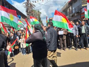 وشهدت الوقفة رفع الأعلام الكوردستانية بكثافة، فيما رددت الجماهير هتافات تعبّر عن وحدة الشعب الكوردي، منها: