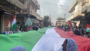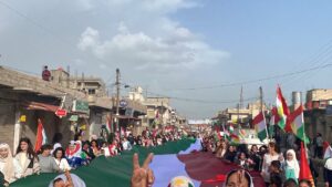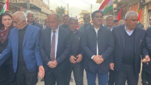 ورفع المشاركون شعارات تدعو إلى وحدة الصف الكوردي والتصدي للهجمات التي تستهدف إقليم كوردستان قيادةً وشعبًا، مؤكدين دعمهم الكامل لشعب كوردستان. كما عبّروا عن إشادتهم بدور القيادة الكوردية، مشددين على ضرورة التكاتف في هذه المرحلة الحساسة.