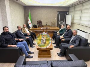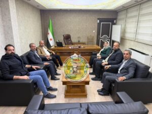 وعقد الوفد لقاءً مع مدير المنطقة السيد عبدالله جشعم، جرى خلاله بحث السبل الكفيلة بتذليل العقبات التي تعيق عودة المهجّرين إلى منازلهم وقراهم، إضافة إلى مناقشة الإجراءات الممكن اتخاذها لتحسين الظروف العامة في المدينة.